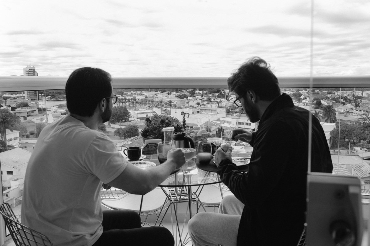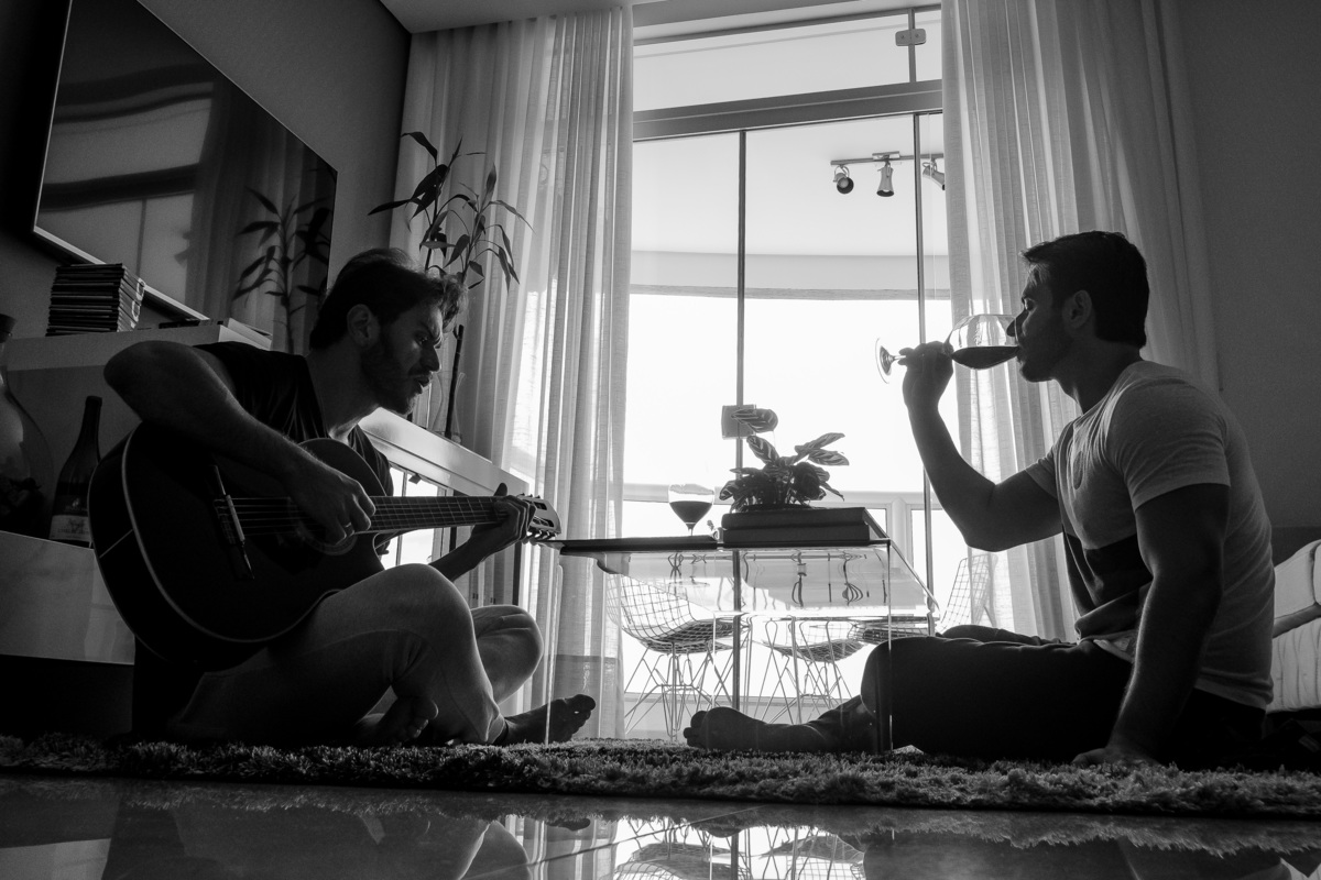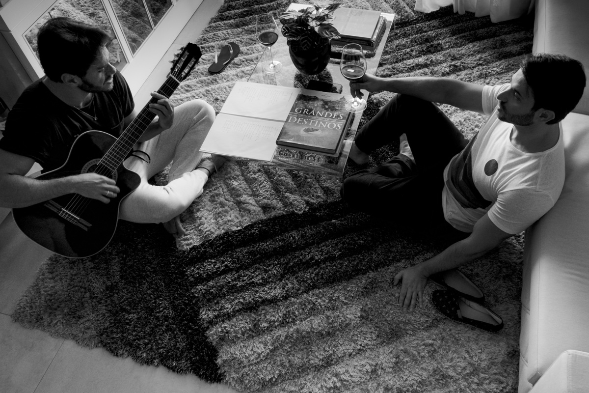 Combinamos quais seriam os momentos importantes à serem registrados: o café da manhã, um momento com violão, vinho, livros, afeto e por fim um piquenique ao pôr do sol. A partir dai tentei interferir o menos possível e deixar os momentos fluirem para que eu pudesse registra-los da forma mais natural possível.